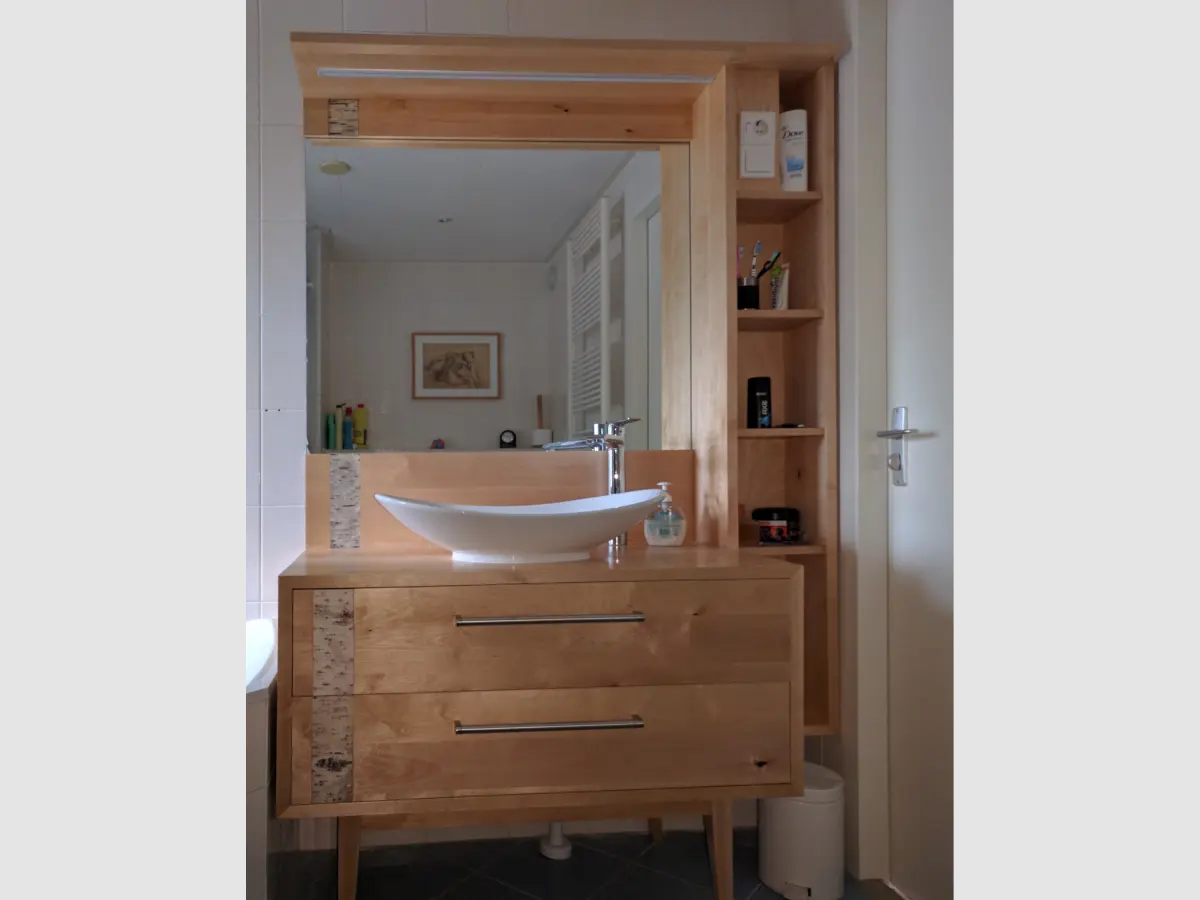 Traditioneel zou ik het rekje van japans cederhout hebben moeten maken, maar dat is hier bijna niet te krijgen. Ik vond echter een prachtig stuk kwartiers gezaagd essen, heel licht van kleur en een mooie rechte nerf.